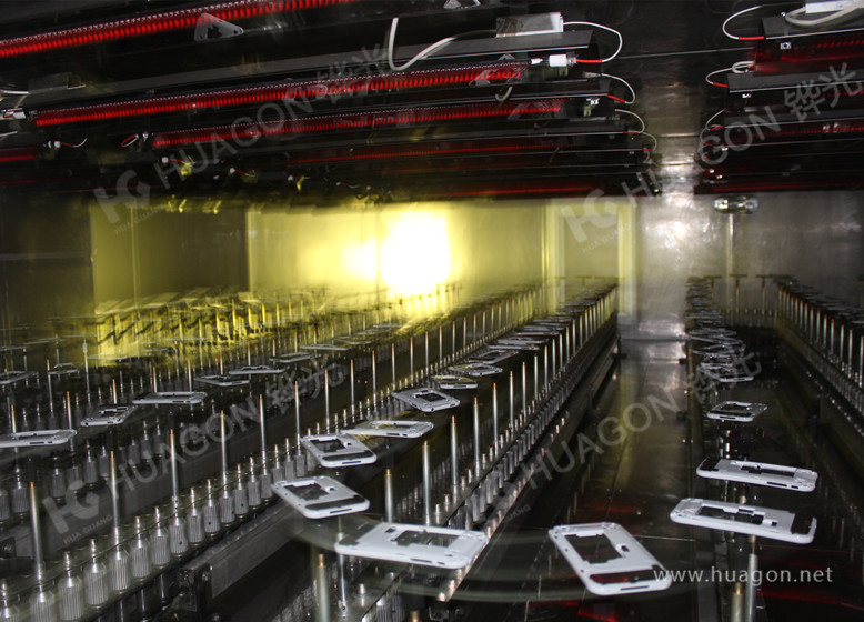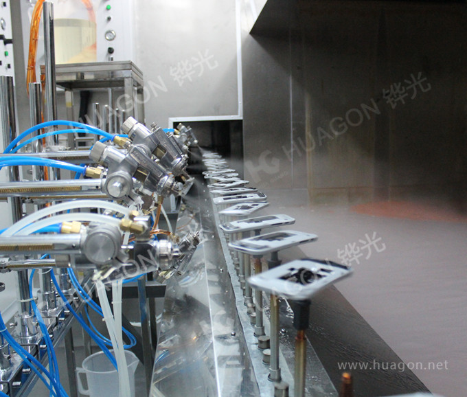 上料-手動(dòng)靜電除塵-素材預(yù)熱-自動(dòng)靜電除塵-自動(dòng)底漆噴涂-表干-自動(dòng)面漆噴涂-靜置-烘烤-冷卻-下料